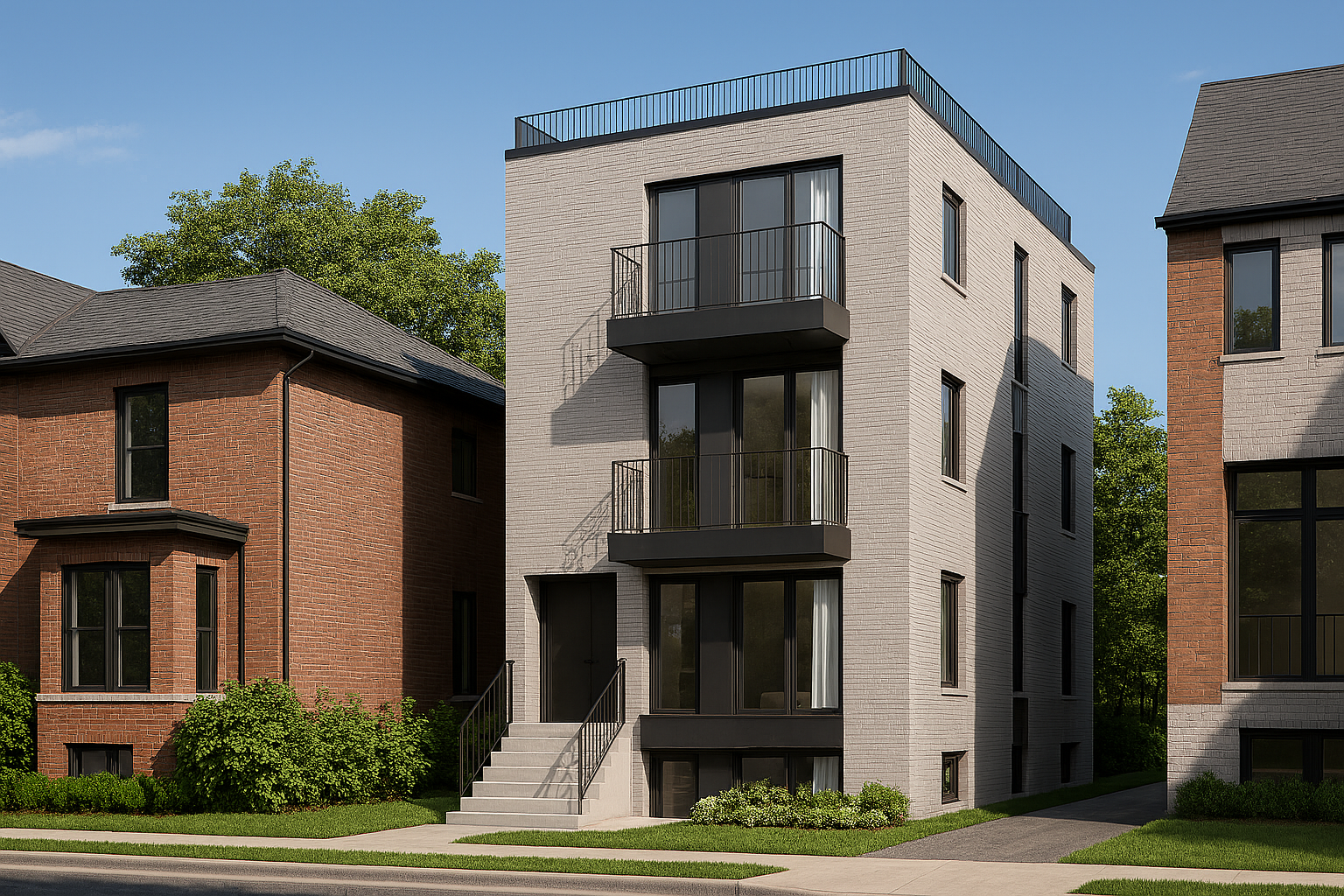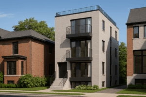 This project involves converting a semi-detached home into a triplex, with a laneway suite as a fourth unit. It includes underpinning the basement PMO Group handled the design, permits, and construction management. Permit was obtained in 2023.